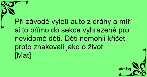 Při závodě vyletí auto z dráhy a míří si to přímo do sekce vyhrazené pro nevidomé děti. Děti nemohli křičet, proto znakovali jako o život.