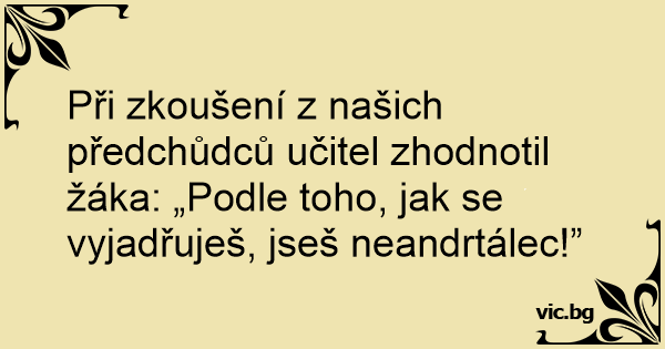 Při zkoušení z našich předchůdců učitel zhodnotil žáka: „Podle toho, jak se vyjadřuješ, jseš neandrtálec!”