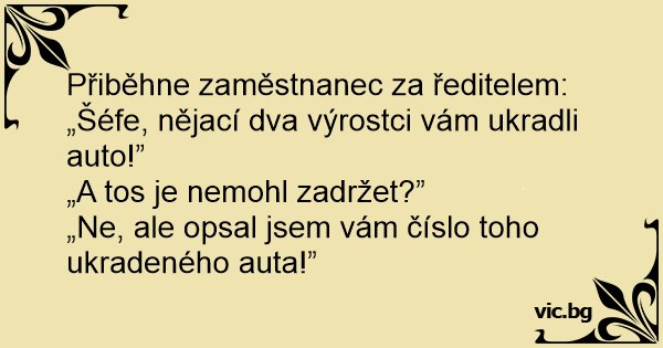 Přiběhne zaměstnanec za ředitelem: „Šéfe, nějací dva výrostci vám ukradli auto!”