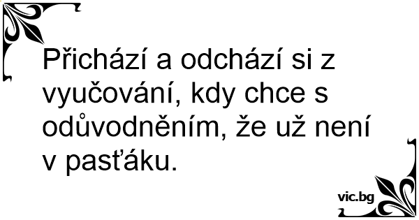 Přichází a odchází si z vyučování, kdy chce s odůvodněním, že už není v pasťáku.