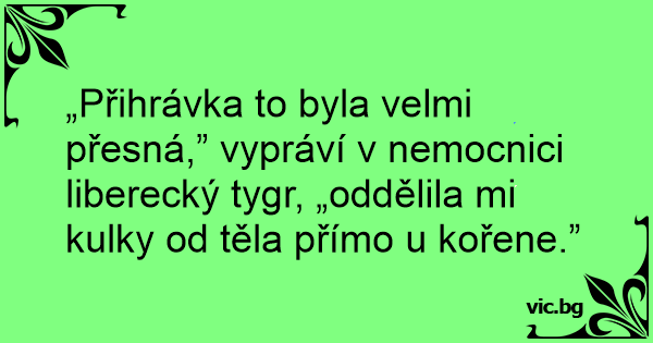 „Přihrávka to byla velmi přesná,” vypráví v nemocnici liberecký tygr, „oddělila mi kulky od těla přímo u kořene.”