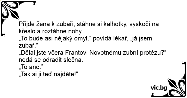 „Dělal jste včera Frantovi Novotnému zubní protézu?” nedá se odradit slečna.