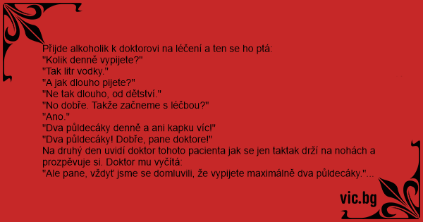 Přijde alkoholik k doktorovi na léčení a ten se hо ptá: