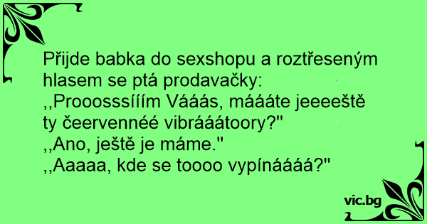 Přijde babka do sexshopu a roztřeseným hlasem se ptá prodavačky: