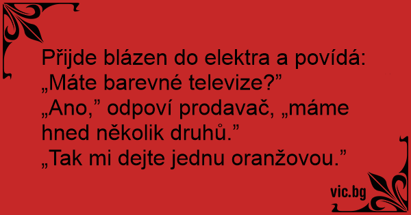 Přijde blázen do elektra a povídá: „Máte barevné televize?”