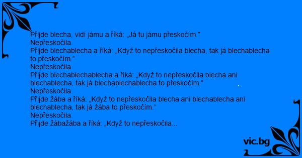 Přijde blechablechablecha a říká: „Když to nepřeskočila blecha ani blechablecha, tak já blechablechablecha to přeskočím.”