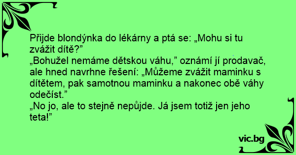 Přijde blondýnka do lékárny a ptá se: „Mohu si tu zvážit dítě?”