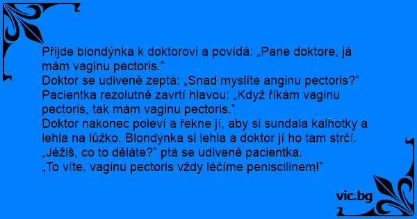 „To víte, vaginu pectoris vždy léčíme peniscilinem!”