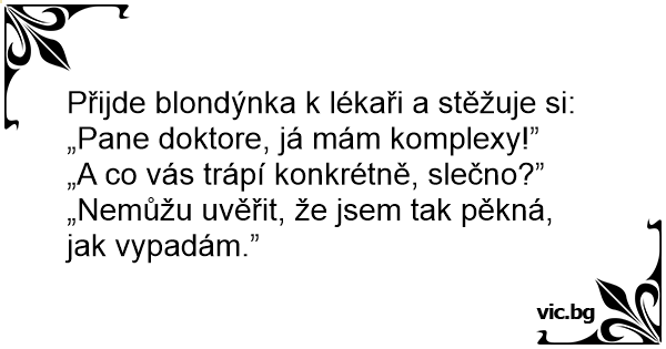 Přijde blondýnka k lékaři a stěžuje si: „Pane doktore, já mám komplexy!”