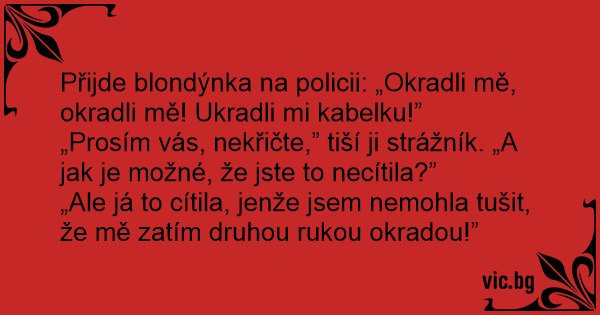 Přijde blondýnka na policii: „Okradli mě, okradli mě! Ukradli mi kabelku!”