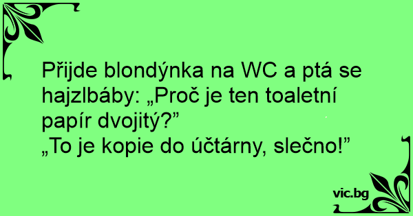Přijde blondýnka na WC a ptá se hajzlbáby: „Proč je ten toaletní papír dvojitý?”