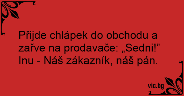 Přijde chlápek do obchodu a zařve na prodavače: „Sedni!”