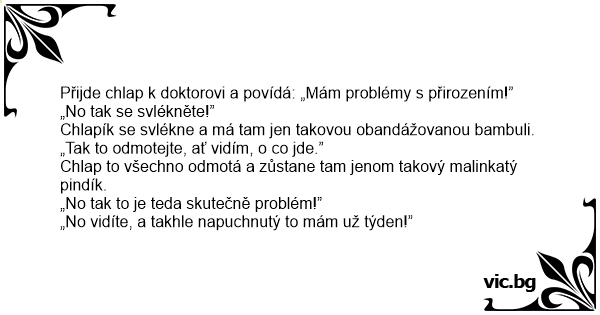 Přijde chlap k doktorovi a povídá: „Mám problémy s přirozením!”