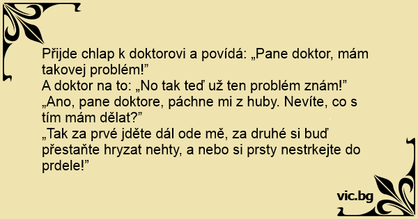 „Ano, pane doktore, páchne mi z huby. Nevíte, co s tím mám dělat?”