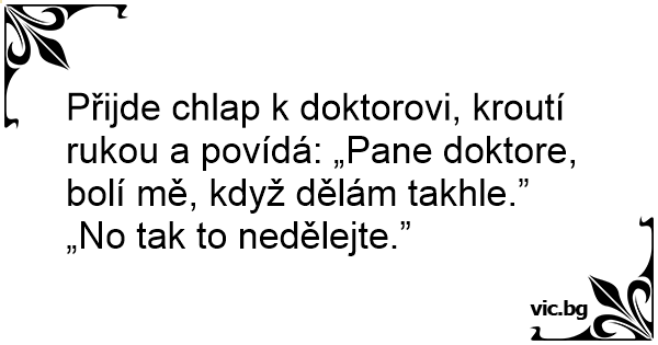 Přijde chlap k doktorovi, kroutí rukou a povídá: „Pane doktore, bolí mě, když dělám takhle.”