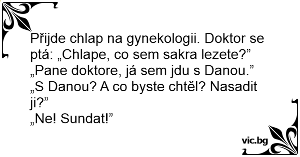 Přijde chlap na gynekologii. Doktor se ptá: „Chlape, co sem sakra lezete?”