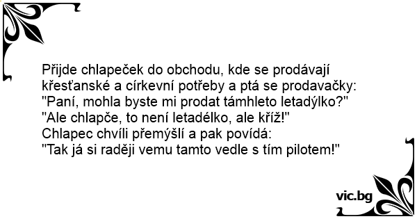 Přijde chlapeček do obchodu, kde se prodávají křesťanské a církevní potřeby a ptá se prodavačky: