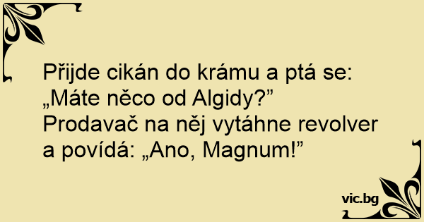 Přijde cikán do krámu a ptá se: „Máte něco od Algidy?”