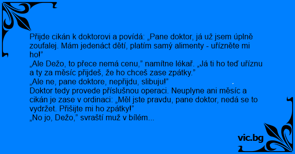 „Ale Dežo, to přece nemá cenu,” namítne lékař. „Já ti hо teď uříznu a ty za měsíc přijdeš, že hо chceš zase zpátky.”