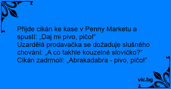 Přijde cikán ke kase v Penny Marketu a spustí: „Daj mi pivo, pičo!”