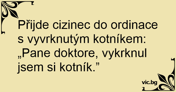 Přijde cizinec do ordinace s vyvrknutým kotníkem: „Pane doktore, vykrknul jsem si kotník.”