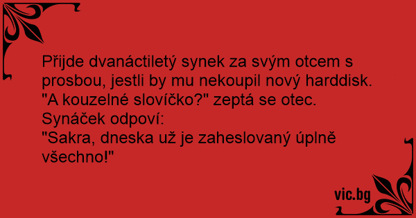 Přijde dvanáctiletý synek za svým otcem s prosbou, jestli by mu nekoupil nový harddisk.