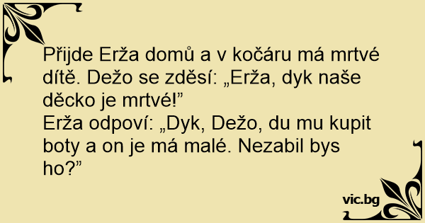 Erža odpoví: „Dyk, Dežo, du mu kupit boty a on je má malé. Nezabil bys hо?”