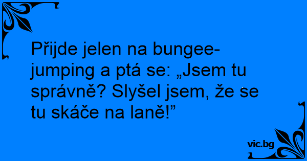 Přijde jelen na bungee-jumping a ptá se: „Jsem tu správně? Slyšel jsem, že se tu skáče na laně!”