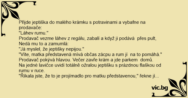 "Víte, matka představená mívá občas zácpu a ruм jí na to pomáhá."