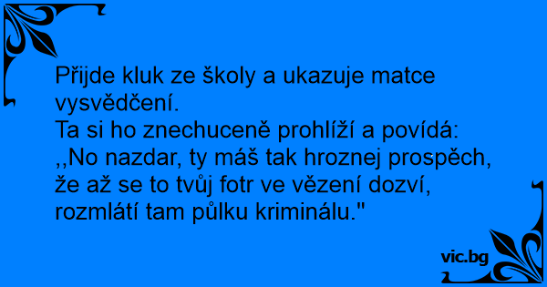 ,,No nazdar, ty máš tak hroznej prospěch, že až se to tvůj fotr ve vězení dozví, rozmlátí tam půlku kriminálu.''