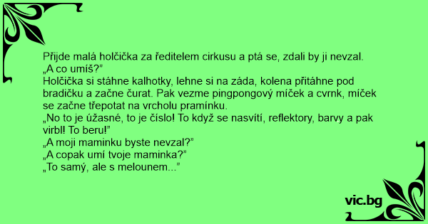 Přijde malá holčička za ředitelem cirkusu a ptá se, zdali by ji nevzal.