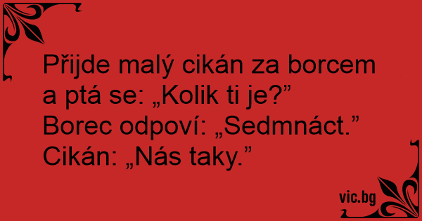 Přijde malý cikán za borcem a ptá se: „Kolik ti je?”