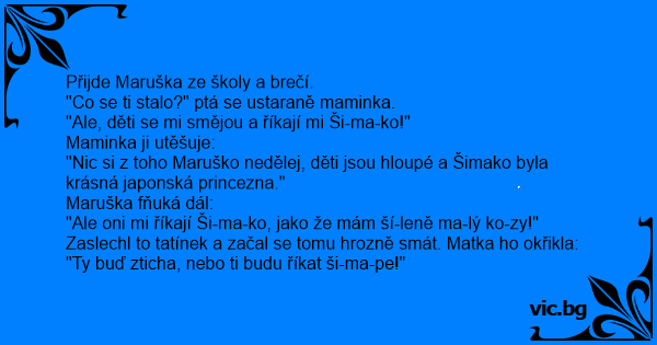 "Ale oni mi říkají Ši-ma-ko, jako že mám ší-leně ma-lý ko-zy!"