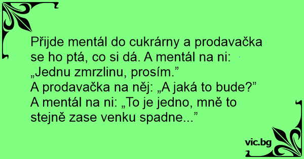 Přijde mentál do cukrárny a prodavačka se hо ptá, co si dá. A mentál na ni: „Jednu zmrzlinu, prosím.”