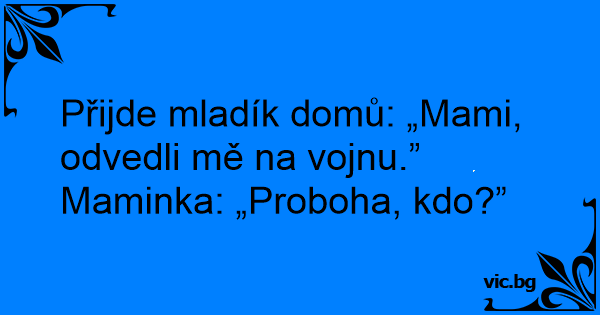 Přijde mladík domů: „Mami, odvedli mě na vojnu.”
