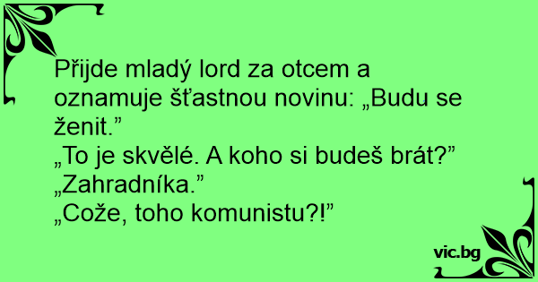 Přijde mladý lord za otcem a oznamuje šťastnou novinu: „Budu se ženit.”