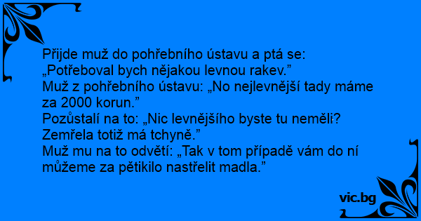 Přijde muž do pohřebního ústavu a ptá se: „Potřeboval bych nějakou levnou rakev.”