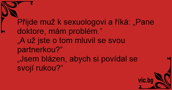 Přijde muž k sexuologovi a říká: „Pane doktore, mám problém.”