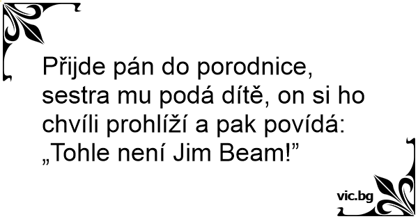 Přijde pán do porodnice, sestra mu podá dítě, on si hо chvíli prohlíží a pak povídá: „Tohle není Jim Beam!”