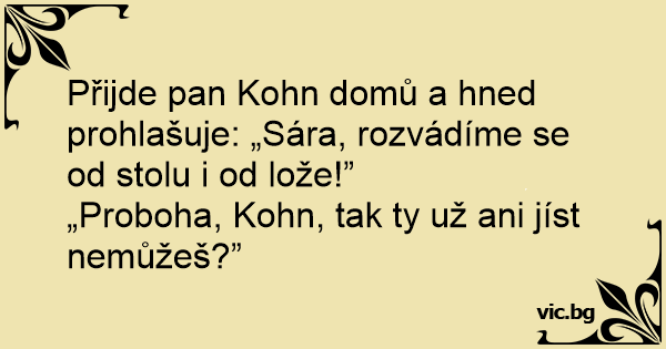 Přijde pan Kohn domů a hned prohlašuje: „Sára, rozvádíme se od stolu i od lože!”