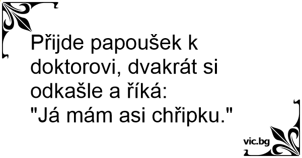 Přijde papoušek k doktorovi, dvakrát si odkašle a říká: