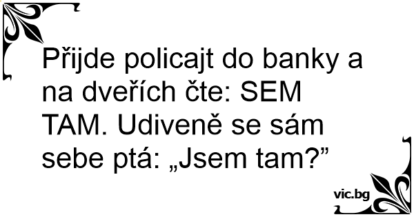 Přijde policajt do banky a na dveřích čte: SEM TAM. Udiveně se sám sebe ptá: „Jsem tam?”
