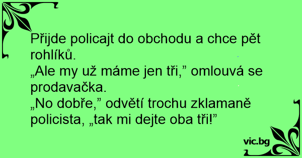 „No dobře,” odvětí trochu zklamaně policista, „tak mi dejte oba tři!”