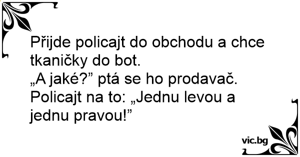 Přijde policajt do obchodu a chce tkaničky do bot.