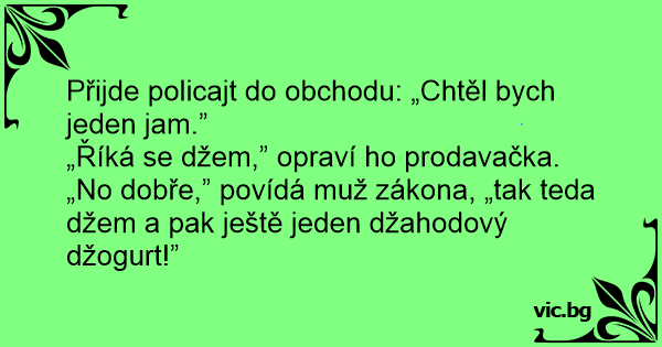 „No dobře,” povídá muž zákona, „tak teda džem a pak ještě jeden džahodový džogurt!”