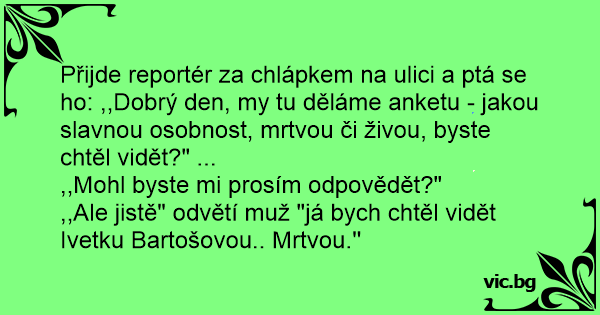 ,,Ale jistě" odvětí muž "já bych chtěl vidět Ivetku Bartošovou.. Mrtvou.''