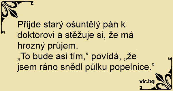 Přijde starý ošuntělý pán k doktorovi a stěžuje si, že má hrozný průjem.
