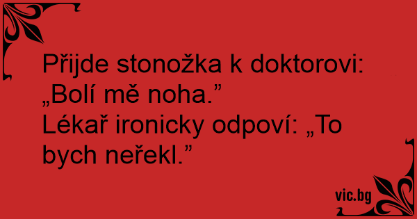 Přijde stonožka k doktorovi: „Bolí mě noha.”