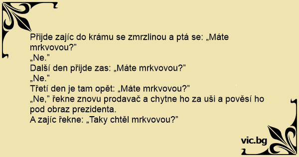 Přijde zajíc do krámu se zmrzlinou a ptá se: „Máte mrkvovou?”