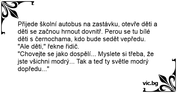"Chovejte se jako dospělí... Myslete si třeba, že jste všichni modrý... Tak a teď ty světle modrý dopředu..."